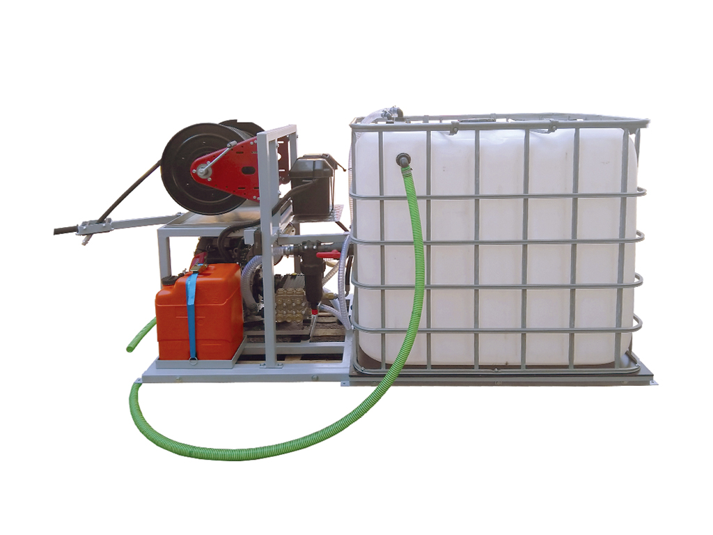 - Устройство для прочистки труб водой под высоким давлением РO-ДЖЕТ 50/150 на металлическом каркасе с бензиновым двигателем Honda GX690 мощностью 22,1 л.с., приводящим в действие трехплунжерный итальянский насос Interpump W1550, который нагнетает рабочее давление в 150 бар, что позволяет прочищать трубы и каналы диаметром от 50 до 350 мм и длиной до 80 метров.